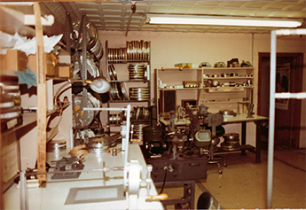 Pike Productions Studio Facility In Watertown Square: Top left, Sound Stage; Top right, Shop; Center Left, Audio Editing Bay; Center right, Film Editing Room; Bottom left, Another FIlm Editing Room; Bottom right, Another film editing Room. Not shown: two blimped Arriflex 35MM Sound Cameras, Light stands and Lights, Indor Camera Crane, Nagra location tape recorder for synced sound, microphones, mike booms, reflectors, etc. |