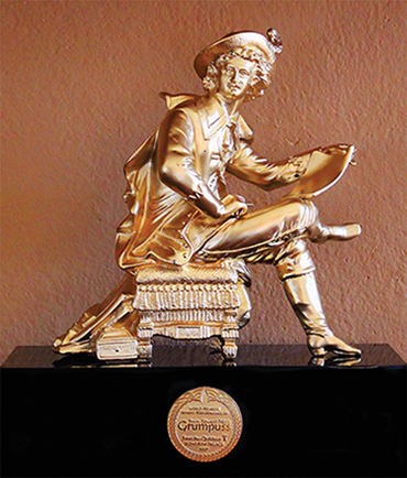 OTHERWORLD COTTAGE INDUSTRIES commisioned this Commemorative Trophy to celebrate the success of the 1997 Save the Children Fund Charity Gala held at the UNESCO World Heritage Site, Blenheim Palace, Woodstock, England, and especially Travis Edward Pike's award-winning production and presentation of GRUMPUSS, his original epic narrative rhyme that continues to receive excellent notices to this day.
