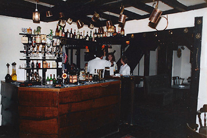 These photos were taken with permission in 1992 at the Green Dragon Inn, Sambourne, Warwickshire, England. It would be difficult to make it look like the ficticious Morningstone in its real-world surroundings, and the pub interior will likely be built on a sound stage, but these interior photos will certainly be appreciated by a set designer. It is here that Morgen hears Laura sing "Morningstone" in a film for a local heritage class. |