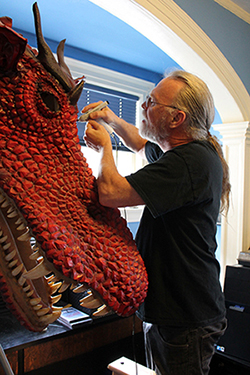 Travis Edward Pike's Long-Grin Saga 2014: This was one of those rare occasions where the operation was considerably more dangerous for the surgeon than it was for the patient. It takes a lot to knock out a dragon, but he won't be out for long! Since the eyes must be made to move and focus together, Billy had to try to do both at once, and if Long-Grin awoke before the operation was complete, there was no saying what might happen! |